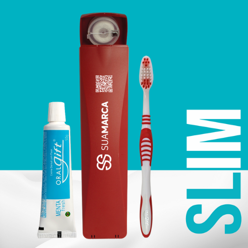 O estojo OralGift Slim combina um design discreto e fino, para os amantes do minimalismo, sem abrir mão da praticidade e proteção que todos os nossos estojos proporcionam. Opções de Smilebox 2x1 (estojo + fio) ou Smilebox completo: 01 estojo Slim, 01 escova OralGift Basic, 01 creme dental 50g, 01 higienizador de língua e fio dental 25m.